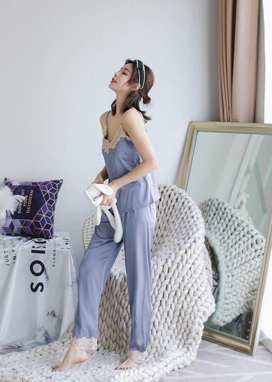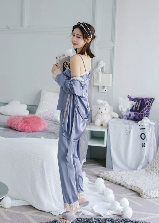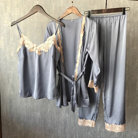 【レディース】ルームウェア サテン レース パジャマ 部屋着 3点セット SH001